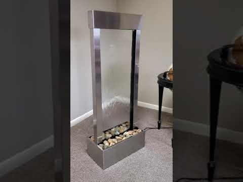 Adagio Water FeaturesSerene Waters waterfall Vertical Wall Mounted Water Feature Features 21” Wide x 36” High x 7” Deep EZ install bracket makes sest-up simple Simple...